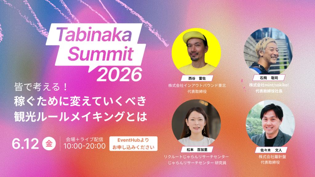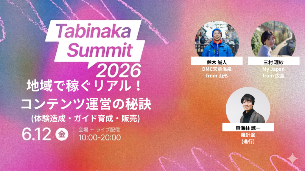 Tabinaka Summit 2026:「タビナカ2.0:もっともっと稼ぐには!!!」